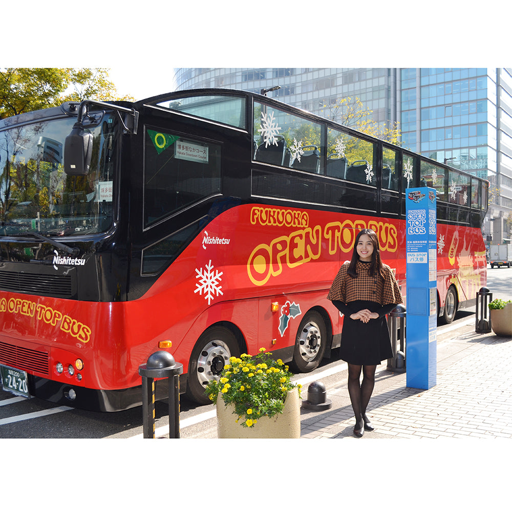 福岡市内の観光スポットをご案内する屋根のない2階建てバス「福岡オープントップバス」。 福岡の自然や風を感じ、太陽の光を存分に浴びながら、およそ3mの眺望からみる景色は、きっと普段とは違うオープントップバスならではの福岡の街並みをご覧いただけたこと間違いなし!バスの車内では、バスアナウンサーが乗客のみなさんに福岡の魅力をお伝えします! およそ1時間の周遊をお楽しみください!